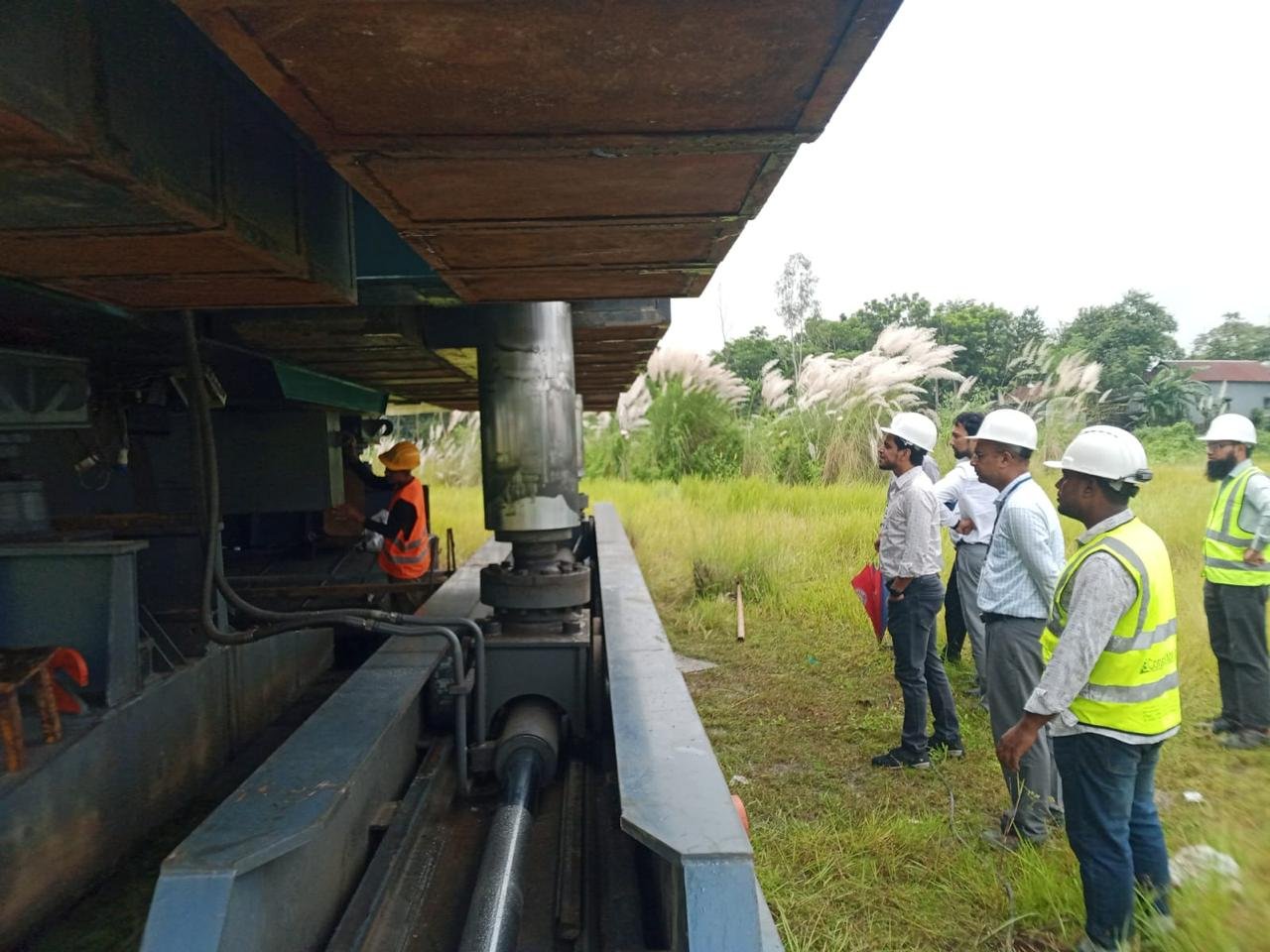Static Load Testing is a method of applying controlled vertical force to a pile to determine its actual load-bearing capacity. The load is applied incrementally, and both settlement and recovery are precisely measured over time.
